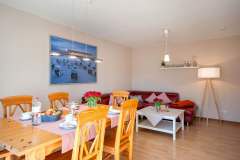 - Wohnzimmer mit Sitzecke und Fernseher, Satelliten-TV, CD-Musikanlage und direktem Zugang zur sonnigen Terrasse